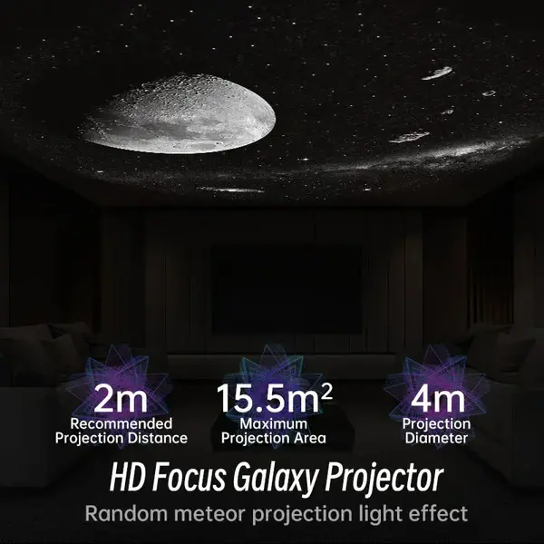 Our projector offers crystal-clear images of stars, planets, and galaxies, enhancing your stargazing experience. With adjustable focus, you can customize the clarity to your liking.